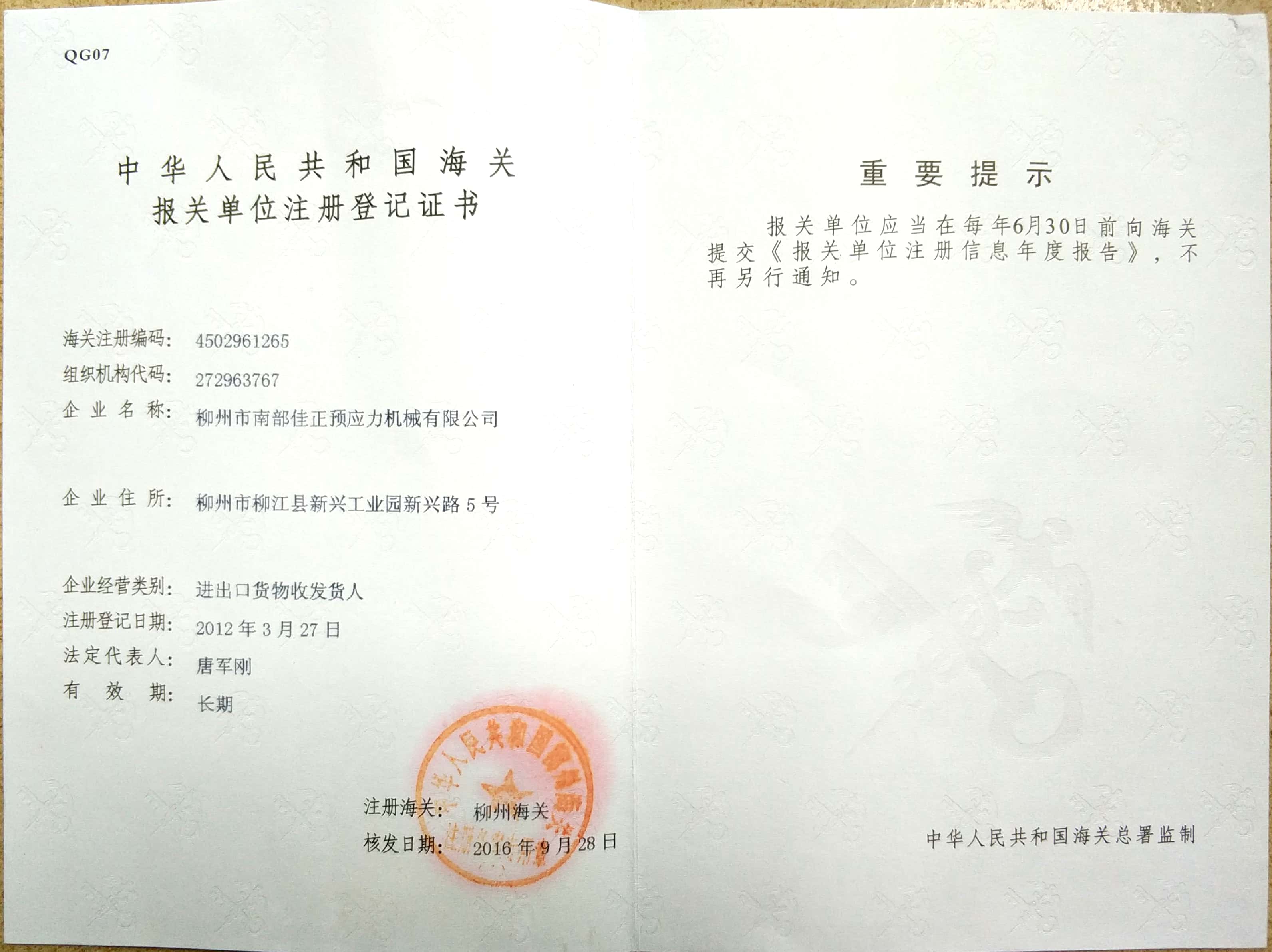 Registration of customs declaration unit