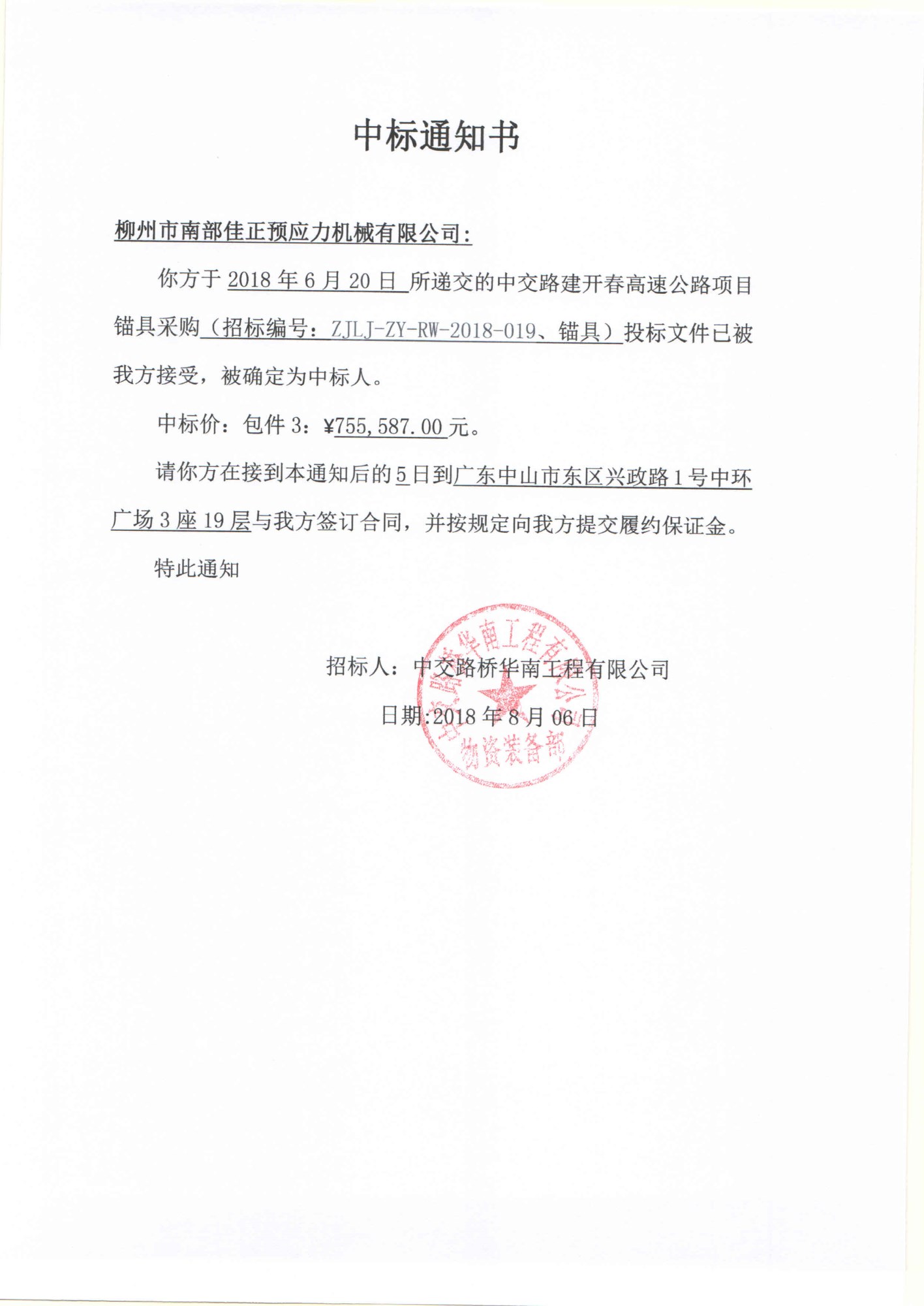 開(kāi)春3包中標(biāo)通知書(shū)