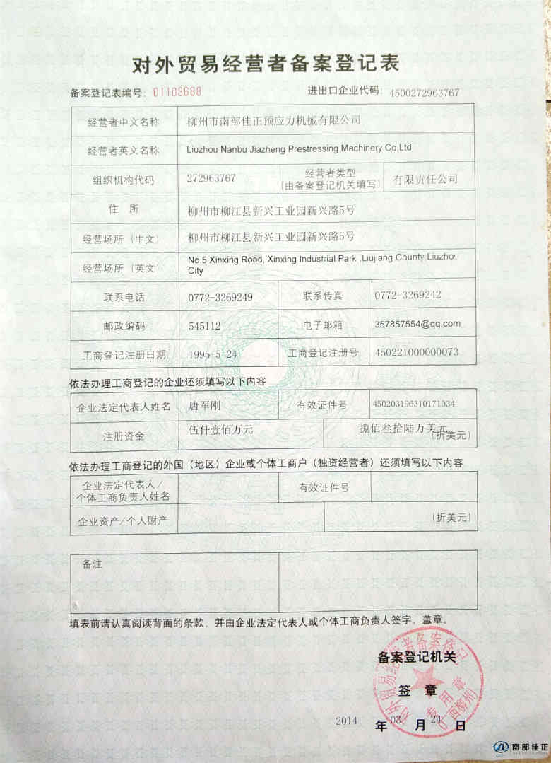 柳州市南部佳正預(yù)應(yīng)力機(jī)械有限公司