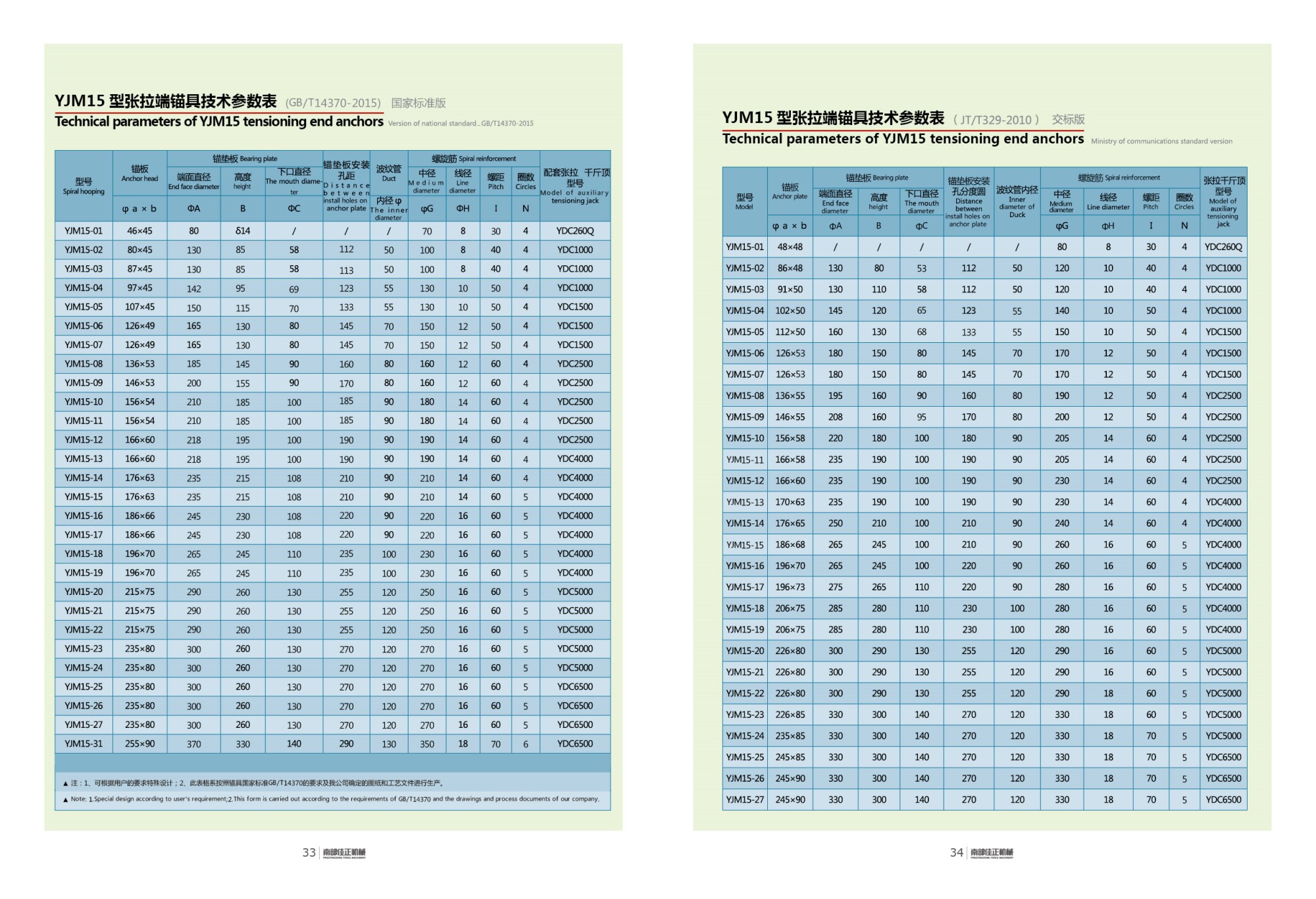 YJM15 型張拉端錨具技術(shù)參數(shù)表